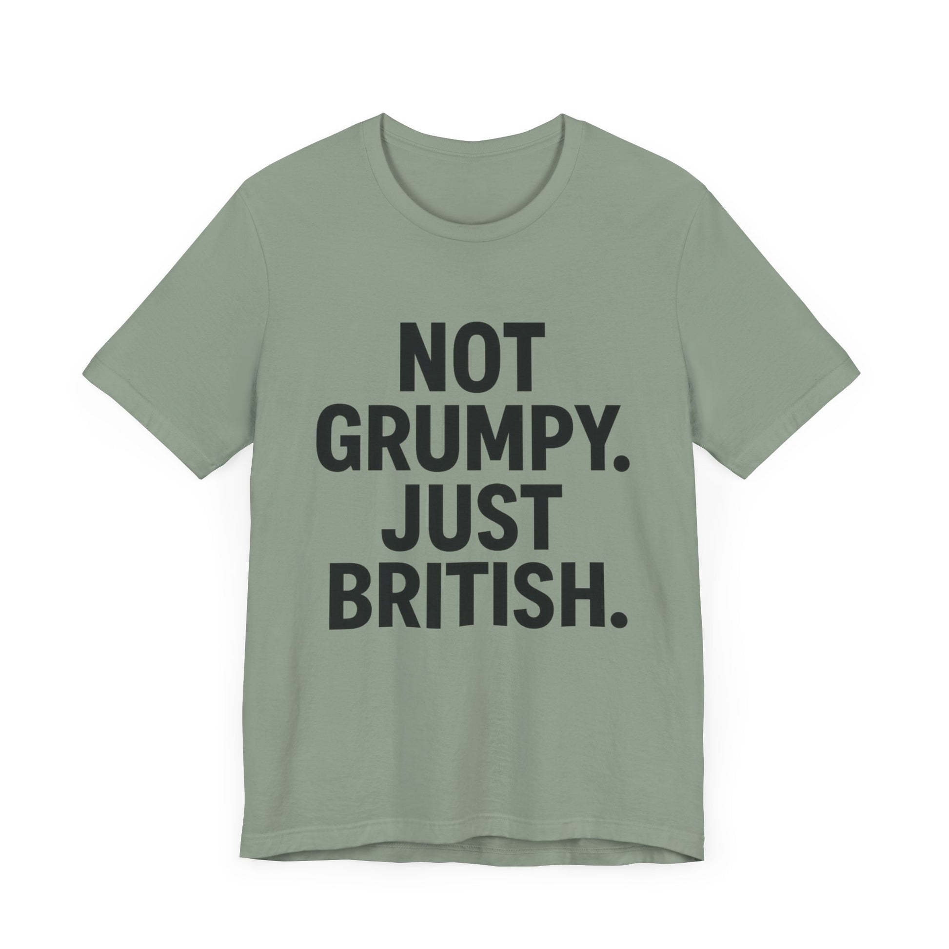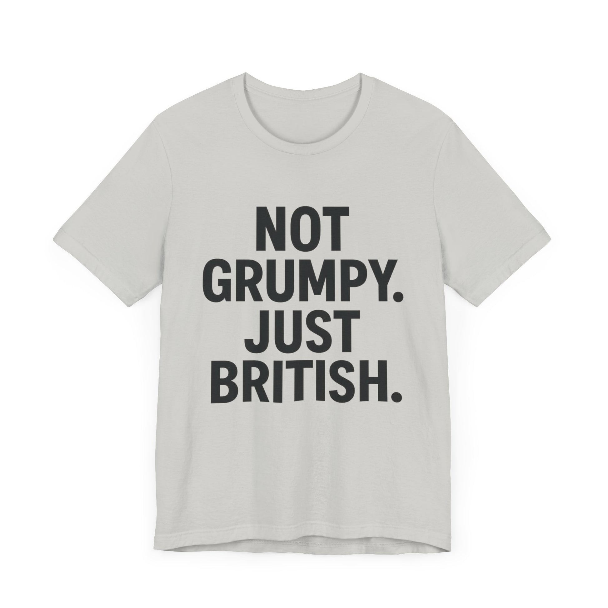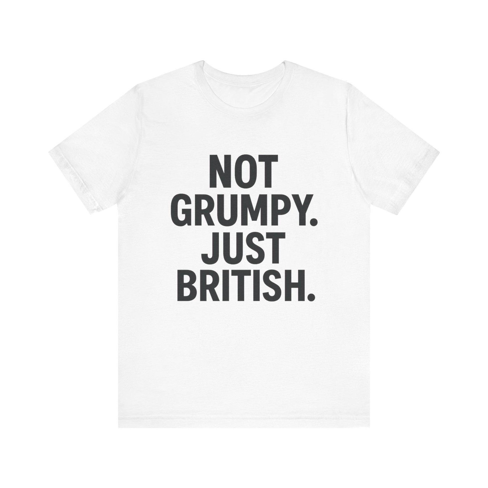 Unisex Jersey Short Sleeve Tee - 'Not Grumpy. Just British.' - Funny British Pride Shirt.