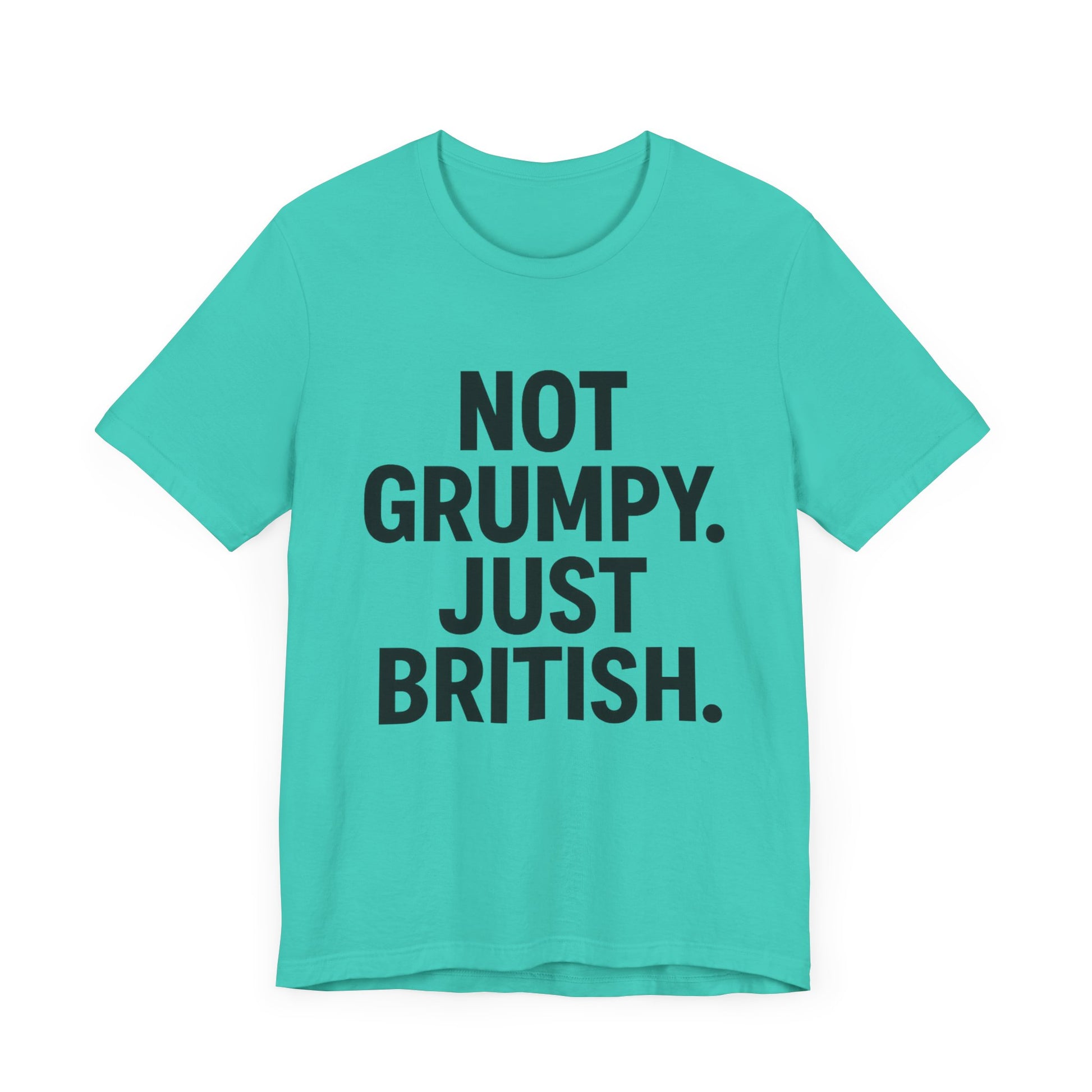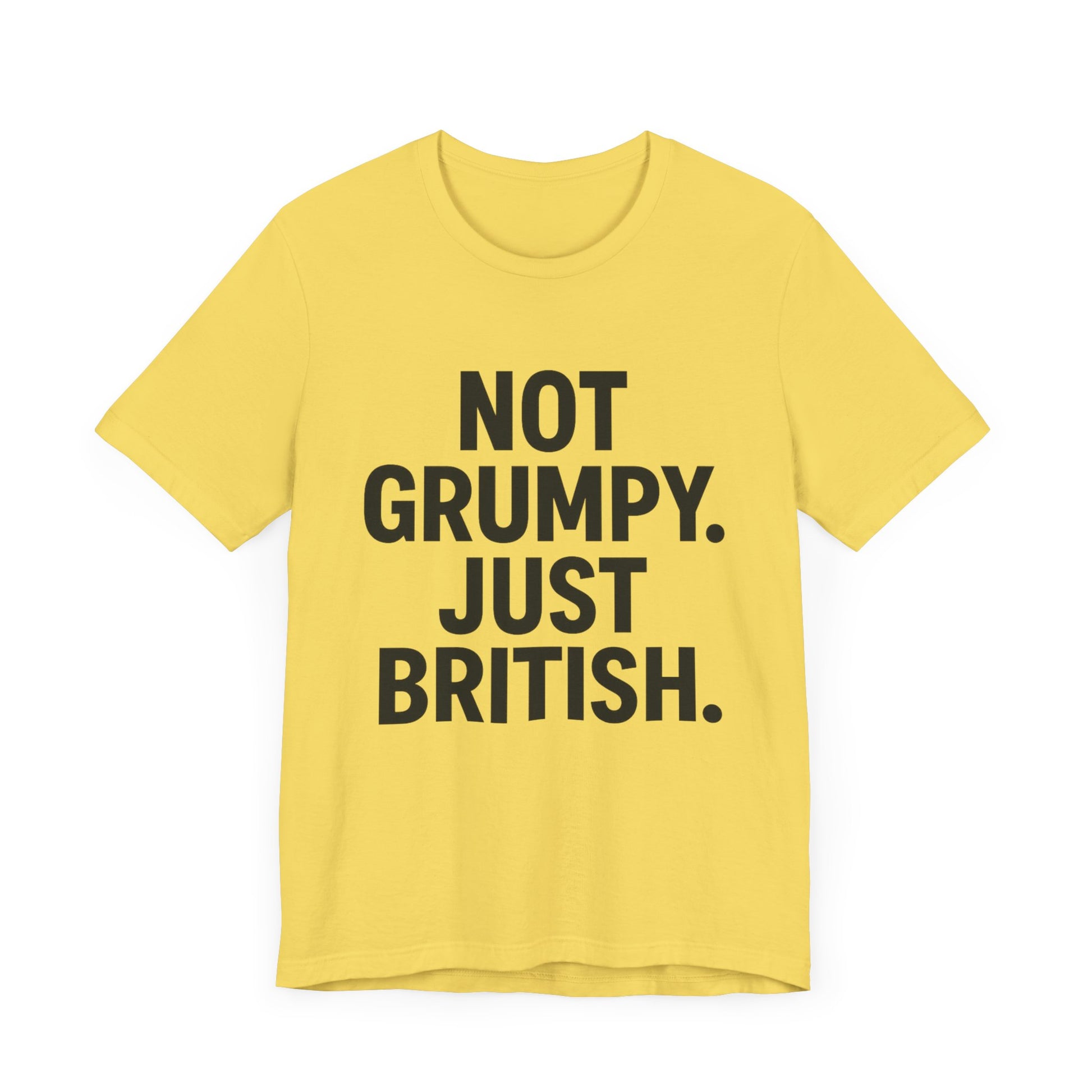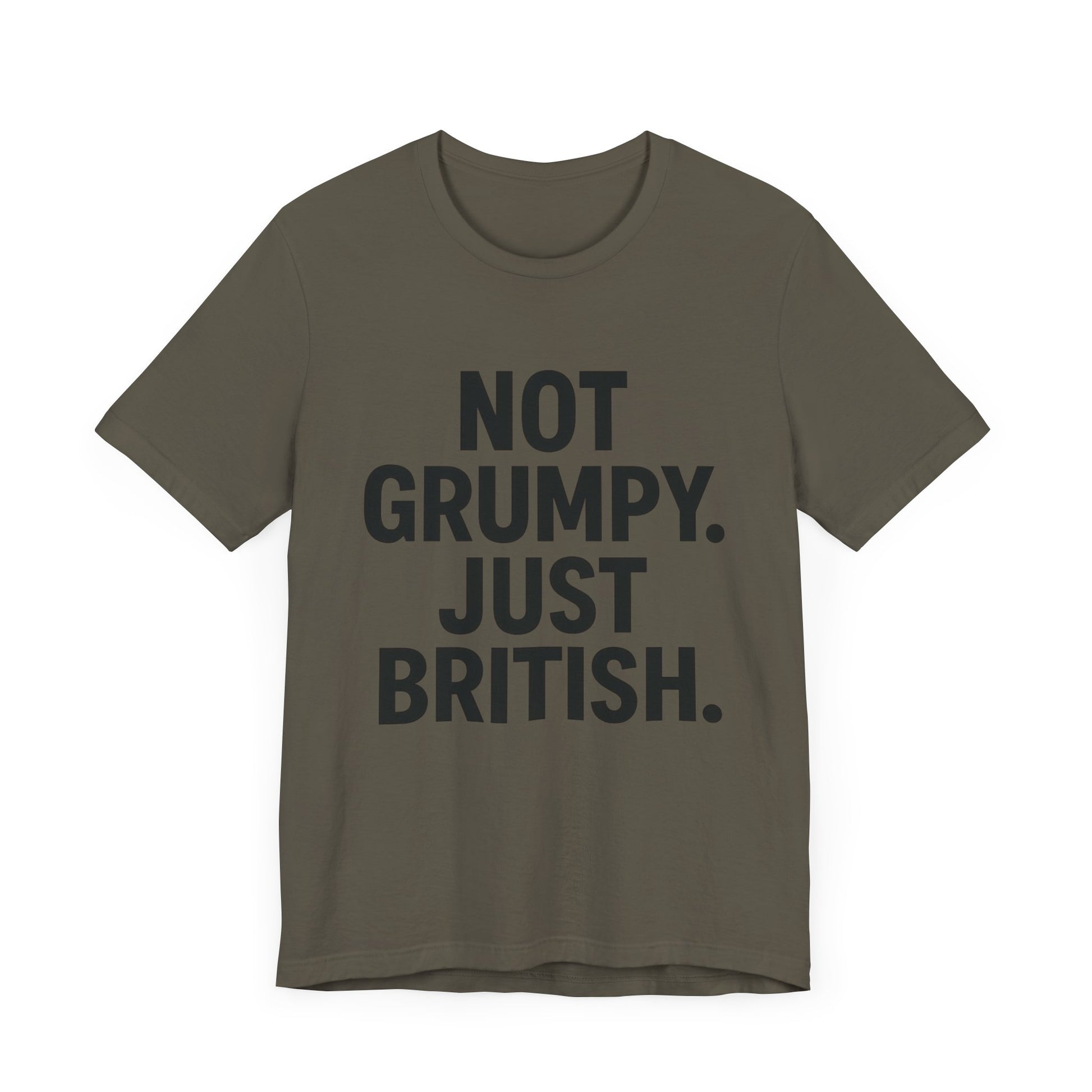 Unisex Jersey Short Sleeve Tee - 'Not Grumpy. Just British.' - Funny British Pride Shirt.